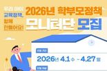 [경기헤드라인=문수철 기자] 경기도교육청(교육감 임태희)이 현장과 함께 만드는 경기교육 정책 실현을 위한 '2026년 경기 학부모정책 모니터단’을 공개 모집한다. 도교육청은 모니터단을 통해 교육정책 수립에서 시행의 모든 과정에 학부모 의견을 폭넓게 반영하고, 학부모-학교-교육청을 연결하는 소통 체계를 강화할 방침이다. 모집 대상은 도내 유‧초‧중‧고‧특수학교 자녀를 둔 학부모로 총 2,566명을 선발한다. 활동 기간은 2026년 5월부터 2027년 2월까지며, 모집은 4월 1일부터 27일까지 진행한다. 선정 결과는 5월 8일 개별 안내할 예정이다 모니터단은 ▲교육정책 관련 온라인 설문 참여 ▲교육정책과 학부모 대상 프로그램 모니터링 ▲정책설명회‧토크콘서트‧간담회에서 의견 제안 등의 활동을 수행한다. 이를 통해 교육정책의 발굴, 집행, 결정, 평가의 전 과정에 학부모의 의견을 제시한다. 참여 희망자는 ‘학부모 온(On)누리’누리집에서 회원가입 후 온라인으로 신청하고, 개인정보동의서를 제출하면 된다. 도교육청은 학부모정책 모니터단을 통해 수요자 중심 정책 소통을 강화하고, 다양한 의견을 체
