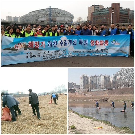 이날 수도권서부본부 환경지킴이 회원과 구로구청, 환경단체 등 약 200여명은 하천 오염을 방지하겠다는 일념으로 쌀쌀한 날씨에도 불구하고 안양천 물속에 쌓여 있는 쓰레기와 둔치의 겨우내 묵은 쓰레기를 1.2톤정도 수거하는 등 안양천을 시민의 품으로 돌려놓는다는 사명으로 구슬땀을 흘렸다.