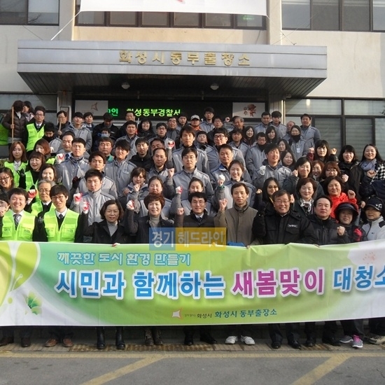 화성시 동부출장소는 시민, 병점1동 사회단체와 기업 관계자 등 150여명과 함께 병점역 일원에서 12일 새봄맞이 대청소를 실시했다.