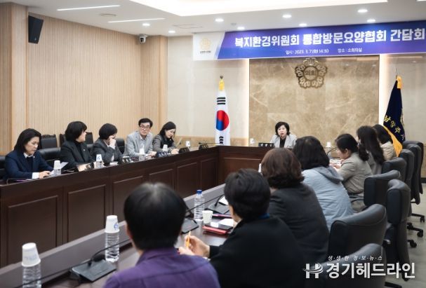 [경기헤드라인=김성구 기자] 남양주시의회 복지환경위원회 김영실 위원장 및 위원들이 지난 3월 7일 시의회 소회의실에서 통합방문요양협회와 간담회를 개최했다