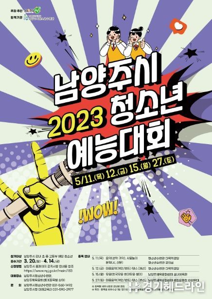 [경기헤드라인=김성구 기자] 남양주시는 예술적 끼와 문화적 재능이 뛰어난 청소년들을 발굴하기 위한 '2023년 남양주시 청소년 예능대회'의 경연 참가자를 모집한다고 20일 밝혔다.
