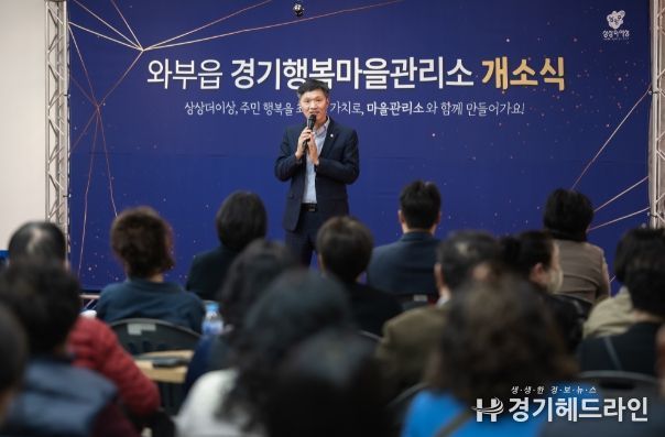 김현택 의장은“행복마을관리소의 개소를 위해 힘쓰신 관계자 여러분의 노고에 깊은 감사의 말씀을 드린다”고 전하며“와부읍 행복마을관리소가 지역주민들의 어려움에 귀 기울이고 힘이 되는 지역사회의 든든한 구심점이 되길 바란다”고 말했다.