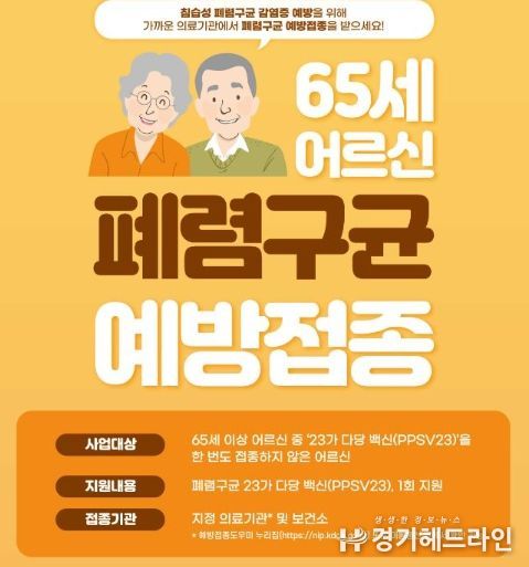 [경기헤드라인=김성구 기자] 남양주시는 65세 이상(1958. 12. 31. 이전 출생자) 어르신을 대상으로 연중 ‘폐렴구균 무료 예방접종’을 시행한다.