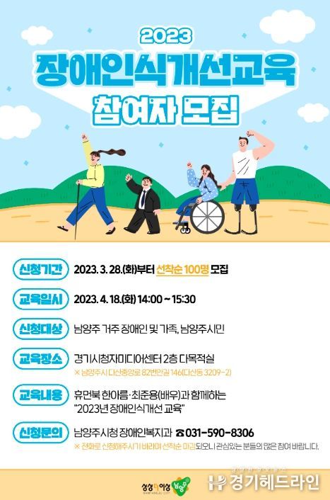시 관계자는 “남양주 시민들을 위해 마련된 특별한 장애 인식 개선 교육에 장애인과 가족 등 시민 여러분의 적극적인 참여를 부탁드린다.”라며 “이번 교육을 통해 앞으로도 남양주 시민들이 서로 소통할 수 있는 자리가 지속적으로 마련되길 기대한다.”라고 전했다.