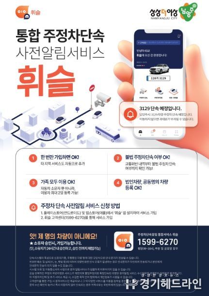 [경기헤드라인=김성구 기자] 남양주시는 도로의 원활한 교통 흐름과 올바른 주차 문화 조성을 위해 전국 단위의 주·정차 단속 사전 문자 알림 통합 서비스 ‘휘슬’을 올해 처음 도입하고, 기존 서비스 가입자들을 대상으로 통합 서비스 전환을 독려했다.
