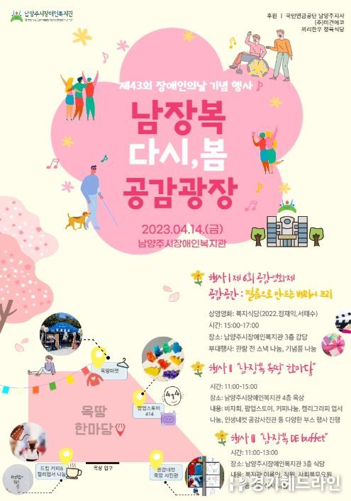 [경기헤드라인=김성구 기자] 남양주시장애인복지관은 오는 14일 장애인의 날을 기념해 제43회 장애인의 날 기념 '다시, 봄 공감 광장' 행사를 개최한다고 12일 밝혔다.