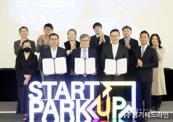 인천경제청은 14일 송도국제도시 인천스타트업파크에서 김진용 청장, 이주호 인천테크노파크 원장, 오영석 태전그룹 회장 등이 참석한 가운데 ‘바이오·헬스케어 스타트업 육성 지원을 위한 상호 업무 협약’을 체결했다고 밝혔다.