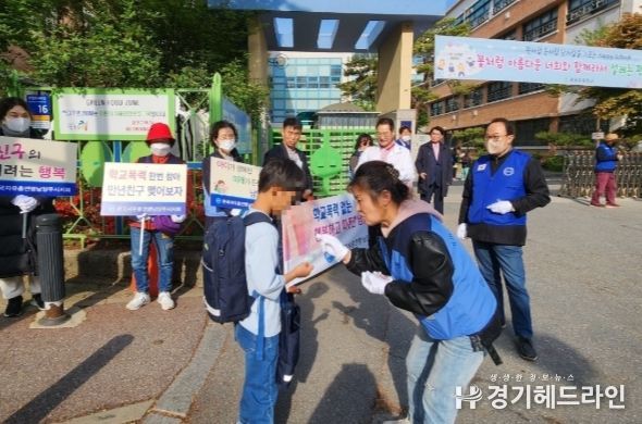 이번 캠페인은 등굣길 학생들을 대상으로 각종 학교폭력 범죄에 대한 경각심을 일깨우고자 마련됐다.