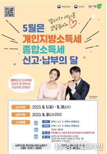 [경기헤드라인=김성구 기자] 남양주시는 개인지방소득세·종합소득세 확정신고의 달을 맞이해 5월 한 달간‘One-stop 신고 도움창구’를 운영한다고 1일 밝혔다.
