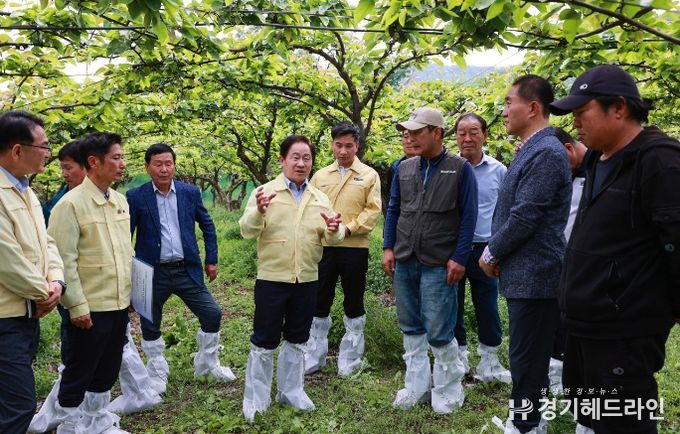 [경기헤드라인=김성구 기자] 주광덕 남양주시장은 4일 올해 배꽃 개화 이후 저온으로 인한 결실 불량 피해가 발생한 먹골배 농가를 방문해 현장을 확인하고, 농민들을 격려하는 시간을 가졌다.
