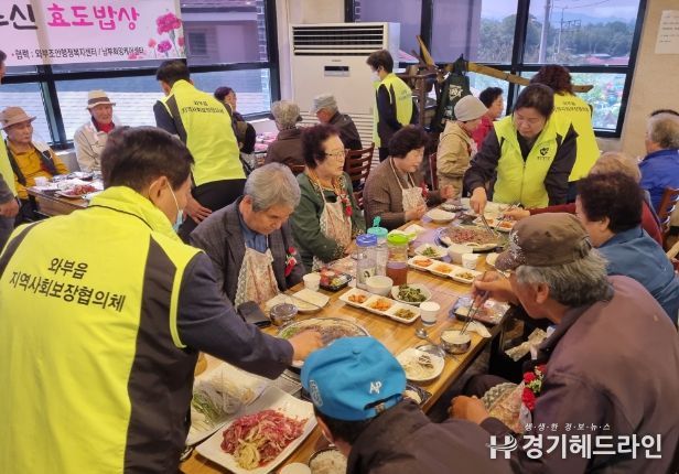 이날 차려진 효도밥상은 와부읍 소재 끼리한우 정육식당에 마련됐으며, 소불고기와 제철 과일, 백설기 떡 등 영양 가득한 음식과 보냉백, 에티켓 손수건 등 기념선물로 구성됐다.