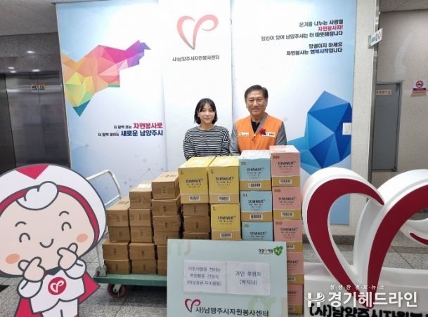 [경기헤드라인=김성구 기자] 남양주시자원봉사센터(이사장 주광덕)는 지난 5월 12일 독지가 박지나 씨로부터 이웃사랑을 실천하는 후원 물품을 전달받았다.