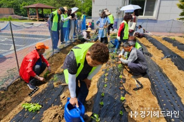 [경기헤드라인=김성구 기자] 남양주시 금곡양정행정복지센터는 17일 금곡동 지역사회보장협의체와 군장마을공동체센터 부지에 텃밭을 조성하고, 정서적 지원이 필요한 중장년 1인 가구를 위해 추진된 텃밭 지원 사업 ‘THE 힘밭기(더 힘나는 텃밭 가꾸기)’ 개장식을 개최했다.