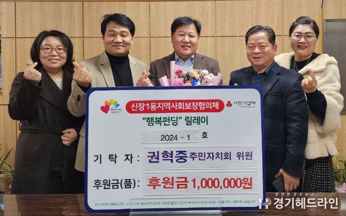 [경기헤드라인=문수철 기자] 오산시 신장 1동은 지난 4일, 신장1동주민자치회 권혁중 위원이 지역사회 복지 발전을 위한 이웃돕기 후원금 100만 원을 기탁했다고 밝혔다.