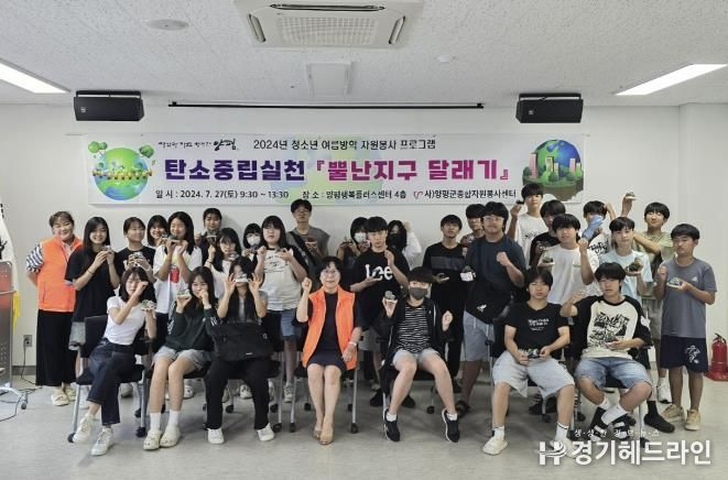 양평군 종합자원봉사센터 이현주 센터장은 “이번 프로그램을 통해 청소년들이 일상에서도 탄소중립 실천에 더욱 적극적으로 동참함으로써 작은 실천이 모여 큰 변화를 일으킬 수 있도록 환경보호에 앞장서길 바란다”고 전했다.