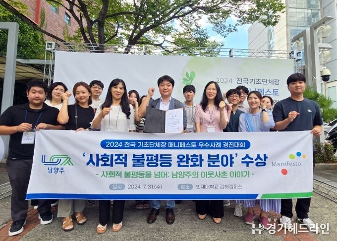 [경기헤드라인=문수철 기자] 남양주시는 지난달 31일 ‘2024년 전국 기초단체장 매니페스토 우수사례 경진대회’에서 사회적 불평등 완화 분야 우수상을 수상했다고 1일 밝혔다.