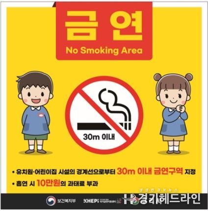 '국민건강증진법' 제9조(금연을 위한 조치) 제6항 1호에서 3호 개정에 따라, 기존 어린이집과 유치원 시설의 경계선으로부터 10미터 이내로 지정됐던 금연 구역이 30미터 이내로 확대되고, 초·중·고등학교 시설 경계선 30미터 이내 금연 구역이 새롭게 추가됐다.