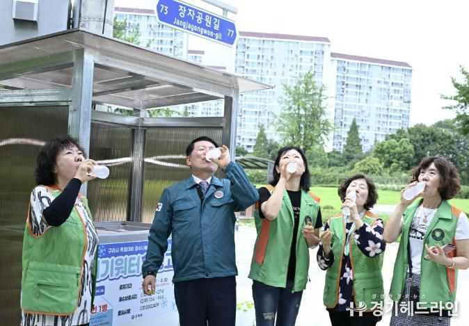 [경기헤드라인=문수철 기자] 구리시는 여름철 폭염 대책으로 여러 가지 시책 사업을 추진하고 있다. 대표적인 사업으로, ‘1인 1병 생수나눔 프로젝트 '여기워터 힐링고'’를 운영하고 있다. 야외 무더위쉼터를 찾는 구리시민을 위해 공원, 둘레길․산책로 등에 힐링냉장고, 힐링박스를 설치하고 시원한 얼음 생수를 공급하여 여름철 재난으로부터 시민 안전 확보에 총력을 다하고 있다.