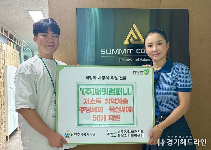[경기헤드라인=문수철 기자] 남양주시 별내동 소재 ㈜써밋컴퍼니는 지난 9일 관내 취약계층을 위한 세제 50개를 남양주시 사회복지관 북부희망케어센터에 전달했다.