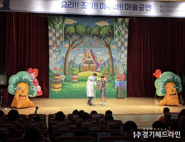 [경기헤드라인=문수철 기자] 구리시어린이·사회복지급식관리지원센터는 8월 7일 수택3동 행정복지센터 공연장에서 센터 등록 13개 시설 초등학생 182명을 대상으로 ‘요리!! 조리!! 마수리!!’ 마술공연을 진행했다.