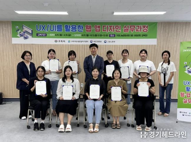 [경기헤드라인=문수철 기자] 구리시는 8월 13일 구리여성새로일하기센터에서 ‘UX/UI를 활용한 웹·앱 디자인 실무직업 교육 훈련’ 수료식을 개최했다.
