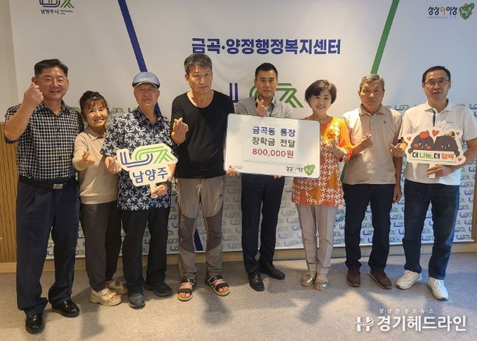 [경기헤드라인=문수철 기자] 남양주시 금곡동 통장 5명을 비롯한 주민 2명은 지역 내 취약계층 고등학생 2명에게 장학금 80만 원을 전달했다.