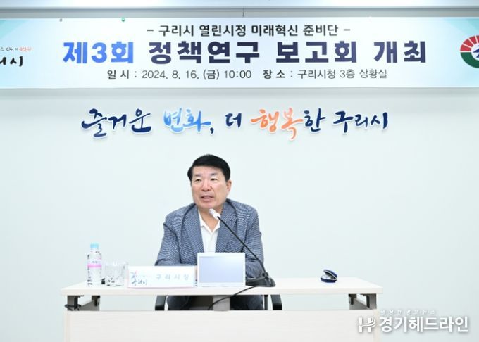 [경기헤드라인=문수철 기자] 구리시는 8월 16일 구리시청 3층 상황실에서 ‘구리시 열린시정 미래혁신 준비단’ 주최로 제3회 정책연구 보고회를 개최했다.