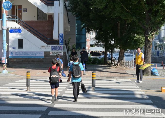 [경기헤드라인=문수철 기자] 8월 19일, 양평군의회는 황선호 의장을 비롯한 5명의 의원이 참석한 가운데, 찜통 더위 속에서 양평초등학교 학생들의 등굣길 교통지도 봉사활동을 실시했다.