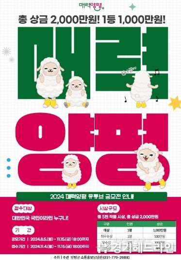 [경기헤드라인=문수철 기자] 양평군은 살고싶고 놀러오고 싶은 ‘매력양평’을 홍보하기 위한 유튜브 영상공모전을 개최한다고 26일 밝혔다.