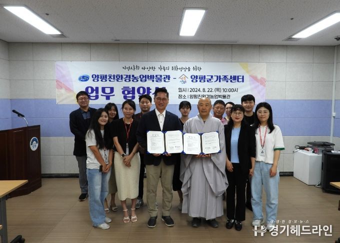 [경기헤드라인=문수철 기자] 양평친환경농업박물관과 양평군가족센터는 지난 22일 양평친환경농업박물관에서 관내 가정의 문화 성장을 지원하기 위한 업무협약(MOU)를 체결했다.