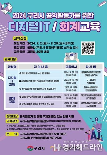 수강생 모집은 오는 9월 2일부터 9월 20일까지 3주간 구리시통합예약포털에서 진행되며, 공익활동가 및 해당 주제에 관심 있는 누구나 교육을 신청할 수 있다.