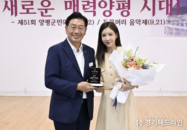 [경기헤드라인=문수철 기자] 양평군이 2일 대회의실에서 열린 9월 월례조례에서 가수 한봄을 양평군 홍보대사로 위촉했다.