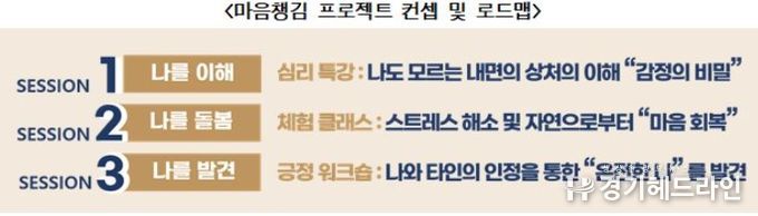 이번 마음챙김 프로젝트는 직원 심리적 안정과 회복탄력성 강화를 목적으로 △자신의 심리적 특성 이해를 통해 고유 경쟁력을 강화하는 ‘내적동기 촉진’ △상황별 스트레스에 대처⋅적응하기 위한 ‘심리적 항상성 유지’ △나와 타인과의 정서 교류를 통한 ‘긍정적 감정 관리’로 구성됐다.