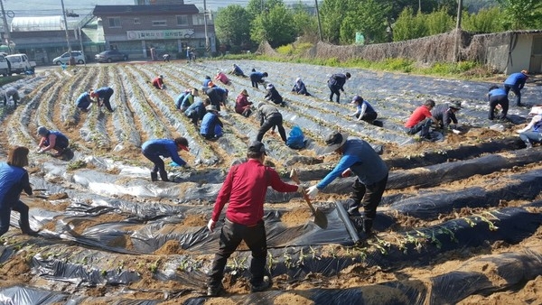 첫 날은 1천320㎡면적의 밭에 고랑을 일구고 비닐을 씌웠으며, 둘째 날은 고구마 순을 심으며, 지난 10년 동안 고구마를 경작해 불우 이웃들에게 매년 평균 10kg 200상자, 10년 동안 2,000상자를 기부해 고구마 사랑을 실천하고 있다.