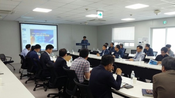 ▲ 평택 고덕 삼성전자 입주지원 TF회의를 개최하고 있다.[경기헤드라인=문수철 기자] 평택시는 24일 삼성전자 반도체 평택공장 현장 사무실 에서 삼성전자 조기 가동 지원을 위한 제14차 T/F회의를 열고 반도체 공장 가동에 차질이 없도록 기반시설 조성에 박차를 가하기로 했다.