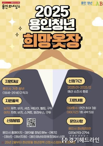 [경기헤드라인=문수철 기자] 용인특례시는 면접을 앞둔 청년들을 돕기 위해 무료로 정장을 빌려주는 ‘희망옷장’ 사업을 운영한다고 6일 밝혔다.