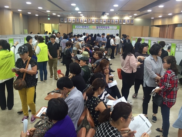[경기헤드라인=김윤종 기자] 경기도와 포천시는 지난 30일 소흘읍행정복지센터 2층 강당에서 일자리를 원하는 구직자 300여명이 참여한 가운데 ‘모이go 잡go 일하go’라는 부제로 2017 포천시 4060 일자리박람회를 개최했다.