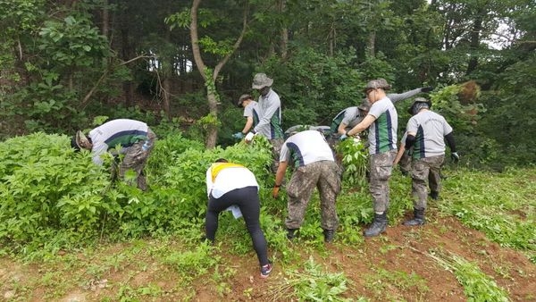 ▲ 민(民)‧관(官)‧군(軍)합동으로 생태계교란야생식물 제거를 하고 있다.[경기헤드라인=김윤종 기자] 연천군은 세계환경의 날과 6월 환경의 달의 맞아 지속가능한 생태도시로의 위상을 강화하고 깨끗한 환경을 만들기 위한 행사를 전곡리선사유적지에서 8일 개최한다.