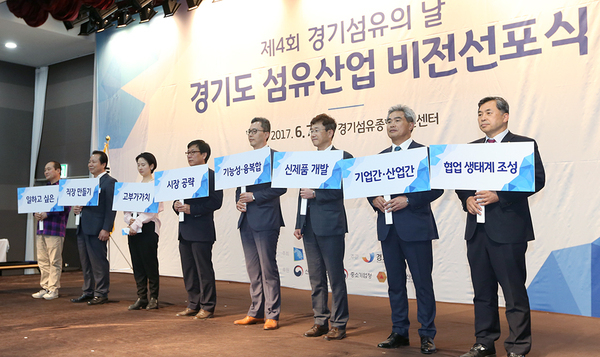 앞으로 도는 ‘SMART&ECO(고기능·친환경) 섬유.패션산업의 메카 경기도’를 비전으로 △중.고가 시장공략과 신규 시장 창출 지원을 위한 마케팅 지원과 브랜드 육성 △섬유산업 글로벌 우위확보를 위한 생산성‧품질 향상 및 기술경쟁력 확보 △섬유인력 확보를 위한 근로환경 개선 및 우수인재 유치‧육성 △무역업종 강화 및 기업‧산업간 협업생태계 조성을 위한 섬유기반구축 등을 4대 추진전략으로 제시했다.