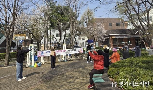 [경기헤드라인=문수철 기자] 지난 17일, 매탄2동 산남어린이공원에서 치매예방 체조교실이 개최됐다.