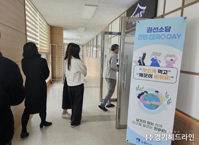 [경기헤드라인=문수철 기자] 수원특례시 권선구는 지난 17일, 구내식당에서 음식물 쓰레기 절감을 위해 ‘잔반 없는 날’을 운영하여 직원들의 친환경 실천 참여를 이어갔다.