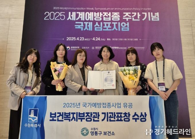 [경기헤드라인=문수철 기자] 수원특례시 영통구보건소가 보건복지부 질병관리청 주관 국가예방접종사업 우수보건소로 선정돼 보건복지부장관상을 받았다.