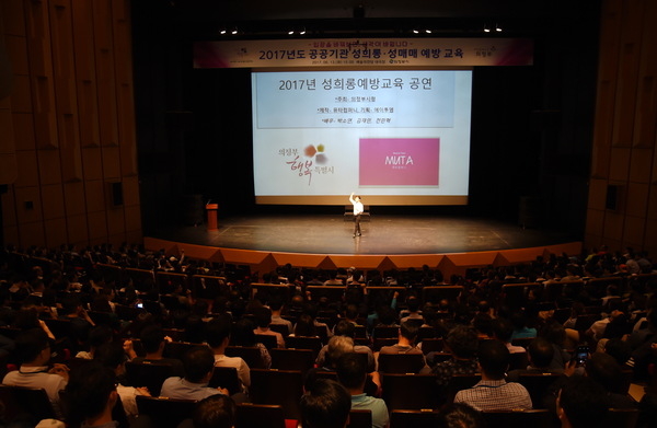 ▲ 13일 의정부예술의전당 대극장에서 전 직원 및 유관기관 등 성희롱 교육을 실시하고 있다.[경기헤드라인=김윤종 기자] 의정부시는 13일 의정부예술의전당 대극장에서 전 직원 및 유관기관인 시설관리공단, 예술의전당, 청소년육성재단 임․직원 등 1,000명을 대상으로 2017년도 공공기관 성희롱·성매매 예방교육을 실시했다.