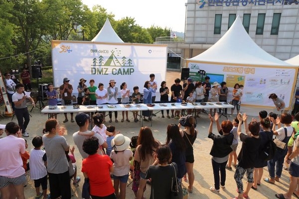 [경기헤드라인=김윤종 기자] 캠핑을 통해 DMZ일원의 정취를 느끼며 지역경제도 살리는 ‘2017 나라사랑 DMZ 체험캠프’가 전국 각지의 캠퍼 750여명이 참여한 가운데 16일부터 18일까지 한탄강관광지 오토캠핑장 등 연천군 일원에서 성황리에 열렸다.