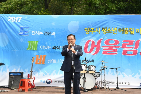 [경기헤드라인=김윤종 기자] 양주시가 주최하고 한국B.B.S경기도연맹 양주시지회가 주관하는 ‘2017년 양주시 청소년 어울림마당’이 지난 17일 이성호 양주시장을 비롯해 정성호 국회의원, 박길서 시의회의장, 도의원, 시의원 등 300여명이 참석한 가운데 고읍동 하늘물공원에서 1회 개막식 행사를 개최했다.