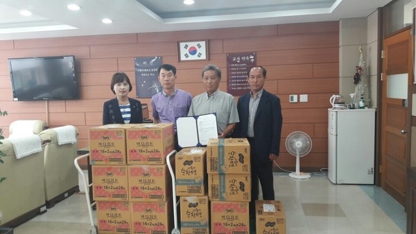 ▲ 19일 운정3동 청소년지도위원회가 동패중학교에 여성위생용품을 기탁했다.[경기헤드라인=김윤종 기자] 파주시 운정3동 청소년지도위원회가 19일 동패중학교에 70여 만원 상당의 여성위생용품을 기탁했다.