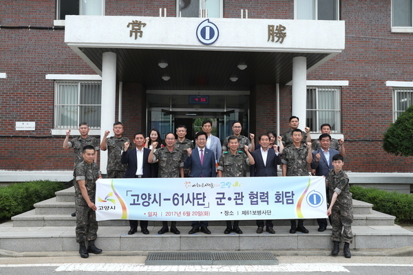 [경기헤드라인=김윤종 기자] 고양시와 제61보병사단)은 지난 20일 제61보병사단에서 최성 고양시장 및 박일재 사단장을 비롯한 도시주택국장, 사단 군보업무담당관 등 20여 명이 참석한 가운데 시와 사단 간 군·관 협력 강화 및 상생발전을 위한 시간을 가졌다.