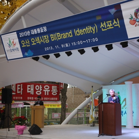 이날 BI 선포식을 가진 오산 오색시장은 그간 화장실 신축, 바닥도색, 가로등 공사, 간판정비, 상설무대설치 등 각종 시설현대화 사업을 완료하고 주말 상설공연, 세일데이 행사, 상인대학운영, 맘스마켓 특화거리 조성 등 전통시장만의 장점을 최대한 살릴 수 있는 다양한 프로그램을 개발해 운영하고 있다.