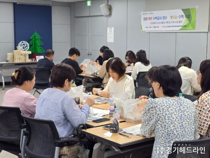 [경기헤드라인=문수철 기자] 인천북부교육지원청은 14일 관내 초‧중학교 수학교사 33명을 대상으로 ‘쉬운 수학, 즐거운 수학, 북부 수학 교사 연수 '빛나는 수학 수업'’을 운영했다.