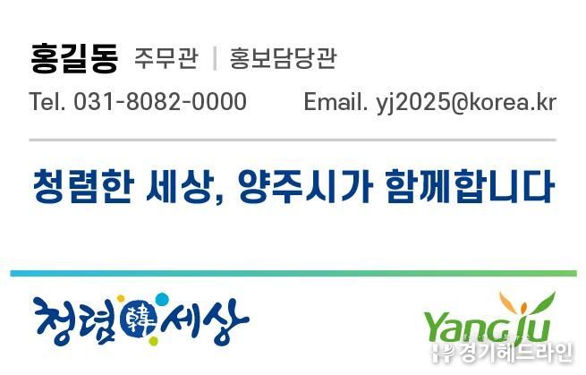 이메일 서명 배너에는 “청렴한 세상, 양주시가 함께합니다”라는 슬로건과 함께 ‘청렴韓세상’ 로고를 배치하여 청렴 실천 의지를 한층 강조했다.